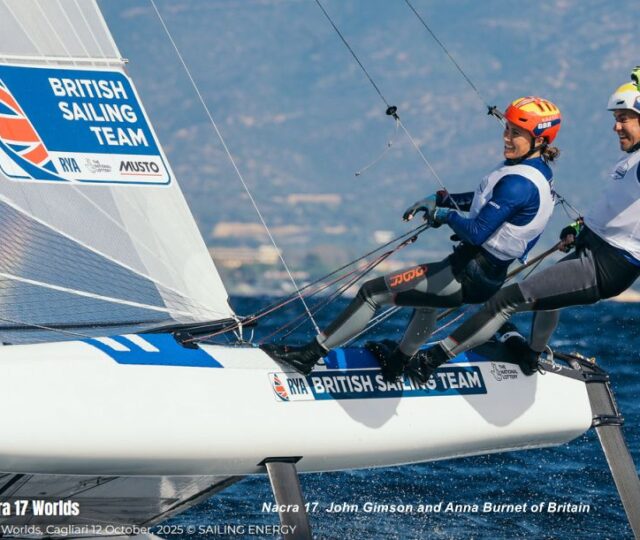 Day 2 of the 49er, 49erFX and Nacra 17 World Championships, Cagliari – Gimson and Burnet keep lead in Nacra 17