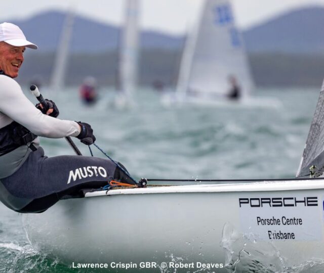 Just one race completed on Day 2 of the Porsche Centre Brisbane 2026 Finn World Masters at Royal Queensland Yacht Squadron, Australia.