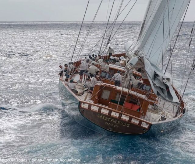 218ft Dykstra/Reichel-Pugh ketch Hetairos, smashed the SYCA Round Antigua Race record at Superyacht Challenge Antigua