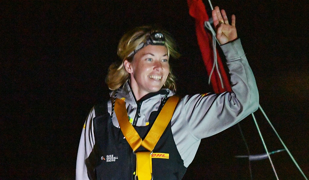 Goodall, (29) from Falmouth UK, and the youngest competitor in the Golden Globe Race, was lying in 4th place at the time, riding out a ferocious storm with 60 knot winds and massive seas aboard her Rustler 36 yacht DHL Starlight.