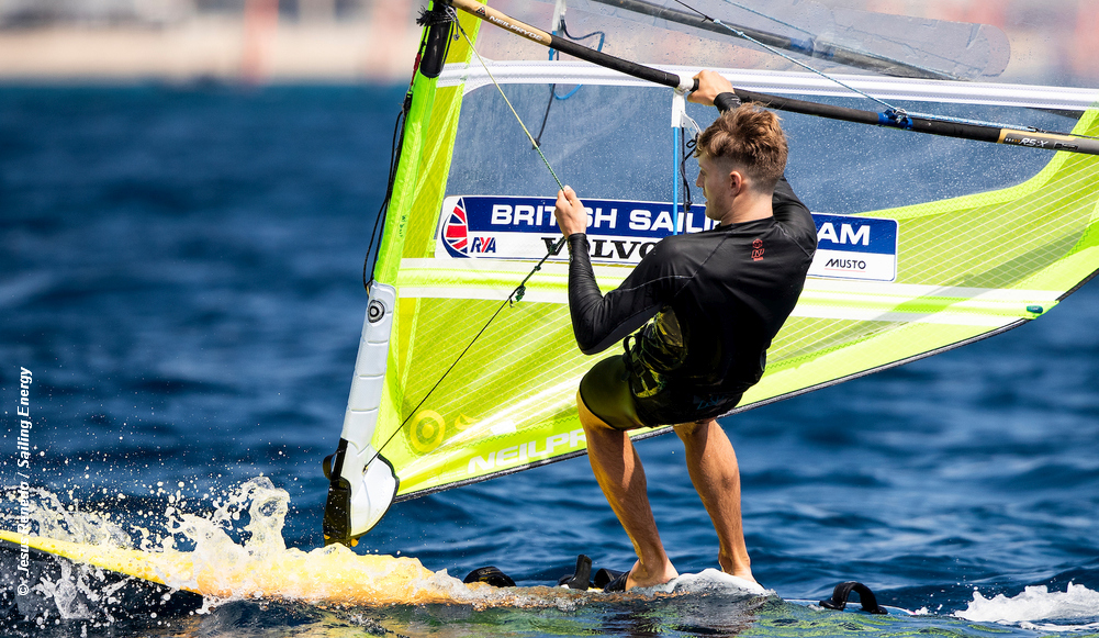 The RS:X got underway and Bryony Shaw finished two of the three races to place sixth behind overall leader Jie Du of China. In the men’s event Britain’s Andy Brown (image below) took his first senior race win and is fifth overall behind leader Mateo Sanz Lanz of Switzerland.