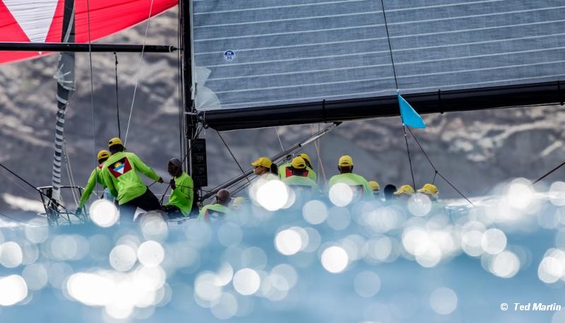Twenty knots of trades powered up the action on Reggae in the Park Race Day at Antigua Sailing Week.