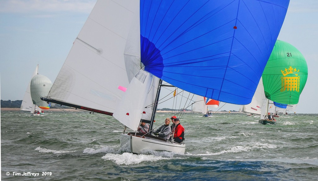 The Folkboat Class made their mark this year as a small but fiercely competitive fleet. The mid-Solent fixed mark courses produced a winning result for Stuart Watson in Crackerjack who also won the event’s ‘Best New Helm’ award.