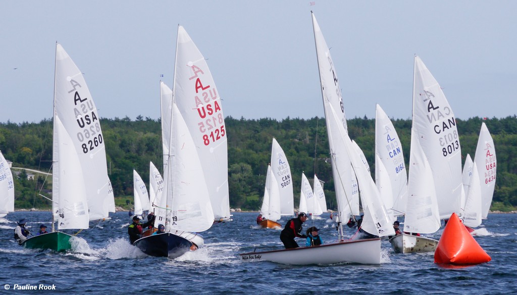 Canada’s Raines Koby and Stephanie Mah take the lead of the Albacore Internationals at Shelburne Harbour Yacht Club, Nova Scotia.