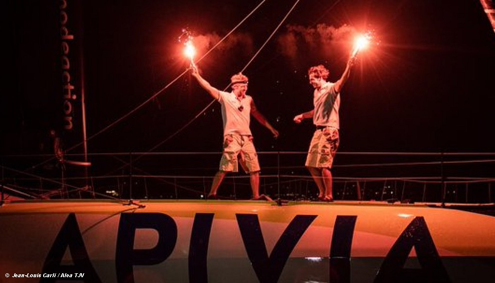 Apivia covered the theoretical course of 4,350 miles at an average speed of 13.42 knots, but actually sailed 5,061.85 miles at an average speed of 15.62 knots.