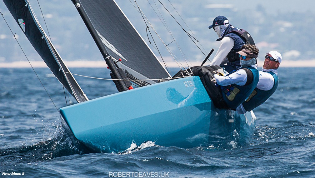With the wind increasing the front-runners changed, with New Moon II finding some pace to round the top mark just a boat length ahead of Artemis XIV.