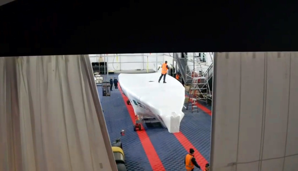 After departing Providence with the AC75, several tons of equipment and American Magic team member Trevor Davidson onboard, the AN-124 made refueling stops in Chicago and Honolulu before landing in Auckland.
