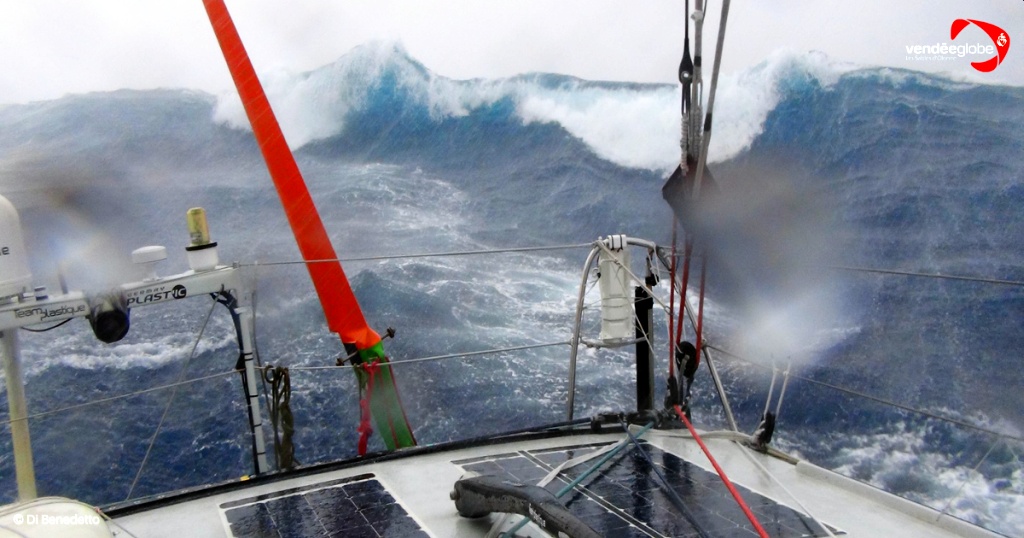 Foils retracted as much as possible, Dalin has stuck to his plan sailing at 17 knots yesterday evening then 13.9 knots in the storm, forecasted to bring 45 knot mean windspeeds and 50-55kts in the gusts.