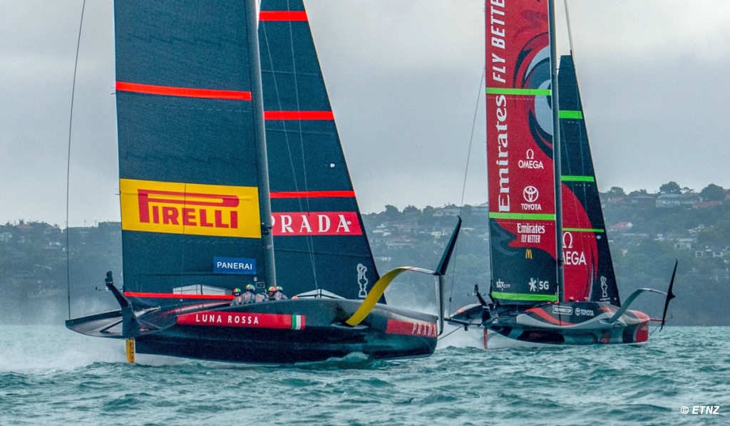 The second day of official practice racing but only ETNZ and Luna Rossa made it onto the water.