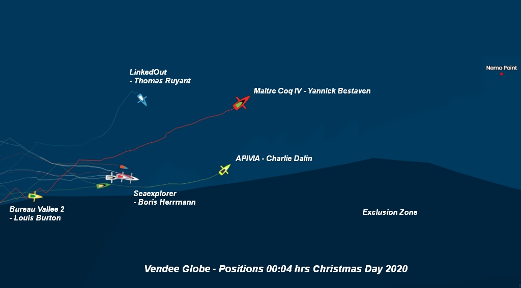 Vendee Globe – Leaders approaching Point Nemo on Christmas Day
