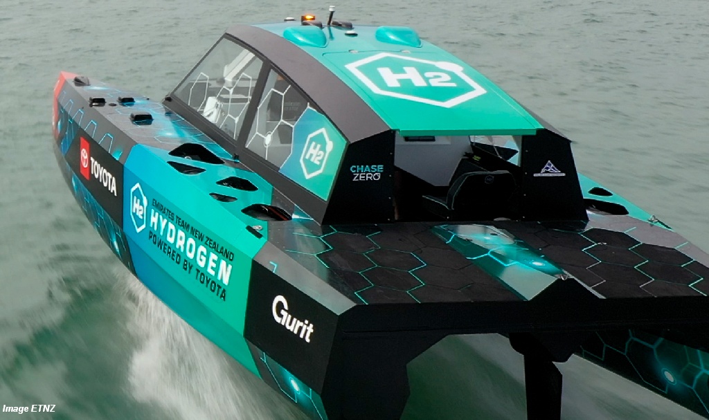 Emirates Team New Zealand have been continuing the commissioning and testing of their hydrogen powered foiling chase boat ‘Chase Zero’ on Auckland’s Hauraki Gulf.