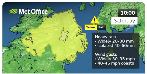 Northern Ireland will be the first to see the influence of this low-pressure system, with a warning for rain in force from the early hours of Saturday morning.
