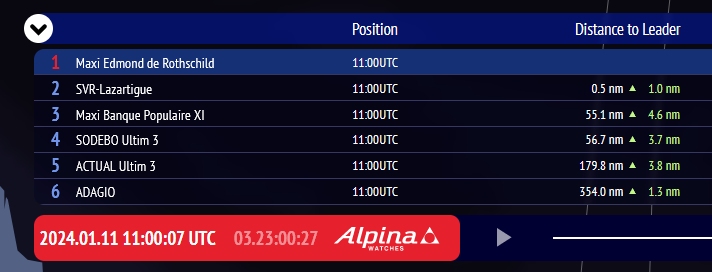 Although Charles Caudrelier (Maxi Edmond de Rothschild) was briefly on top after he was first to tack through the front last night, Tom Laperche is back leading the fleet this Thursday morning.