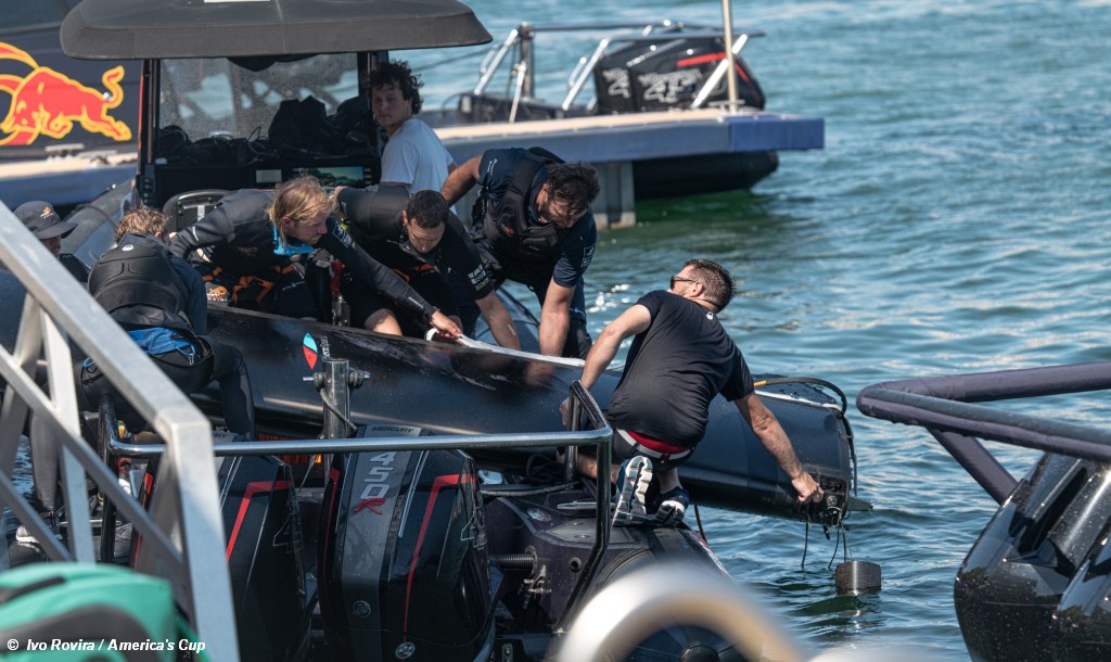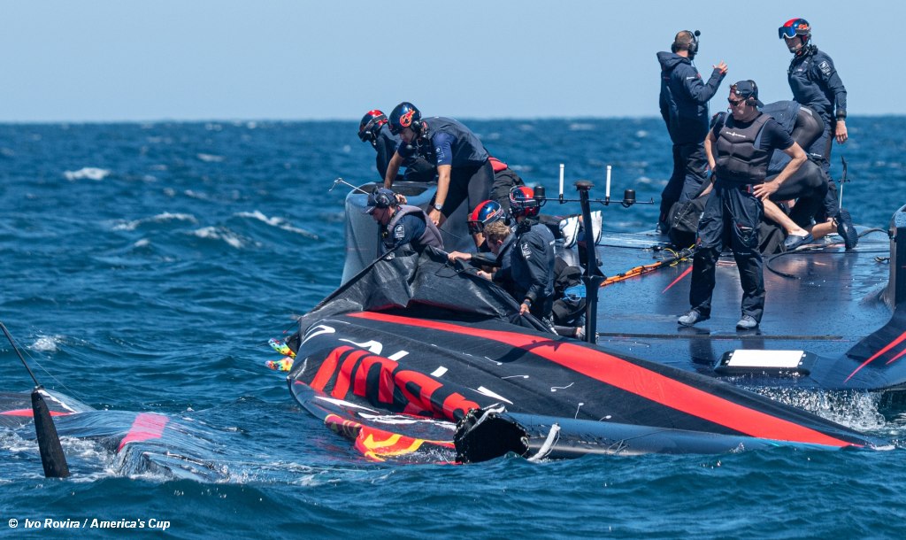 Silvio Arrivabene, the Co-General Manager of Alinghi Red Bull Racing commented . . . “Incidents like this are part of the sport. The team is prepared for this kind of situation and ready with all the necessary spare parts, so the focus is now on getting BoatOne back on the water as soon as possible.”
