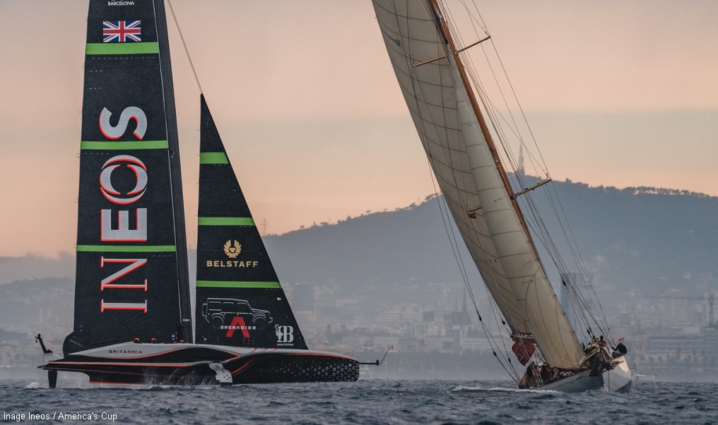 Good start for Britannia, but Kiwis take lead after tacking on GBR, who came off foils. NZL lead by 24sec at gate 1. after GBR came off foils at Gate 4, NZL was away . . . By gate 5 NZL lead by 2min 13 sec and finish with a 3min 02sec (1400 metre) non-scoring win over Ineos Britannia.