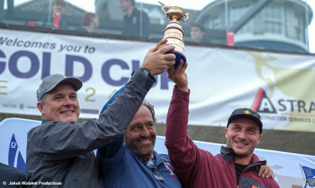 Pedro Rebelo de Andrade sailing First Things First POR 89, with Jose Leitmann and Jamie Lea were winners of the 2024 Dragon Gold Cup.