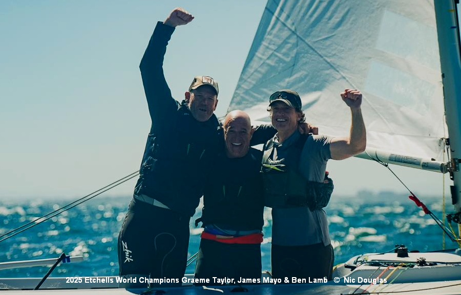Graeme Taylor, James Mayo and Ben Lamb sailing AUS1486 (5, -27) confirmed their 2025 Etchells World Championship victory.