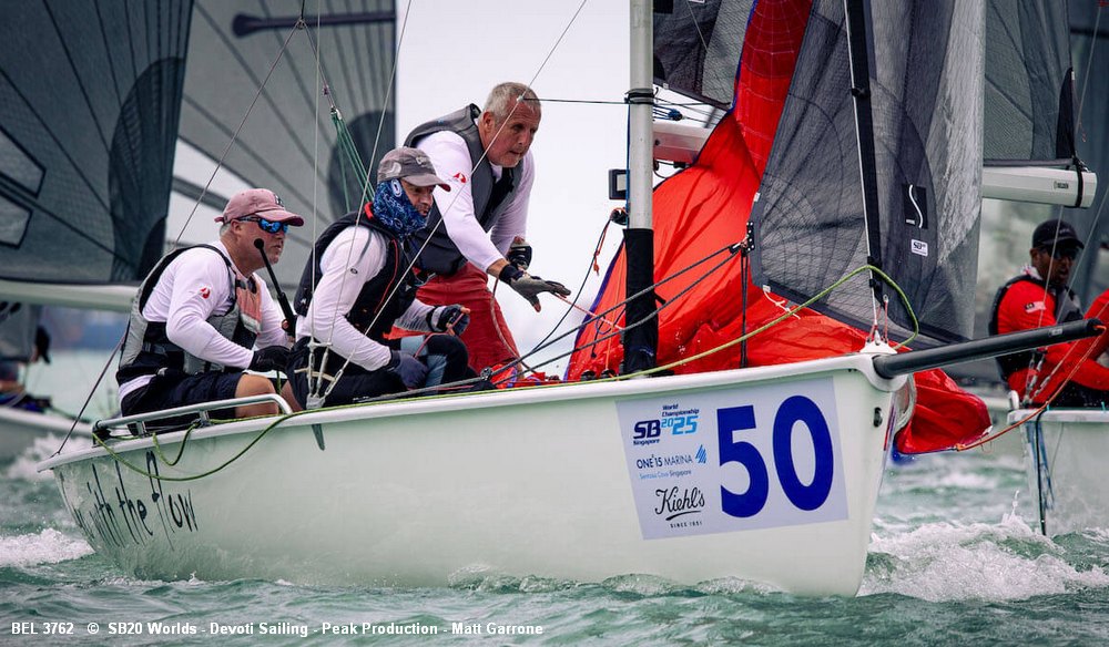 Bart Tytgat of Belgium, with Marc Braet and Kristof Woutters leads the 2025 SB20 World Championship after four races completed on day 1.