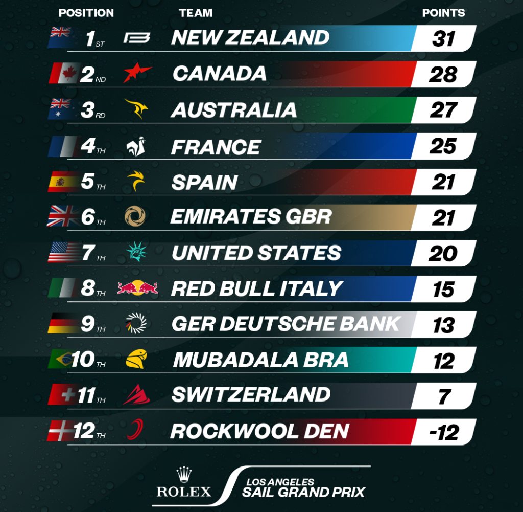 New Zealand top the fleet leaderboard on the first day of SailGP racing in Los Angeles.