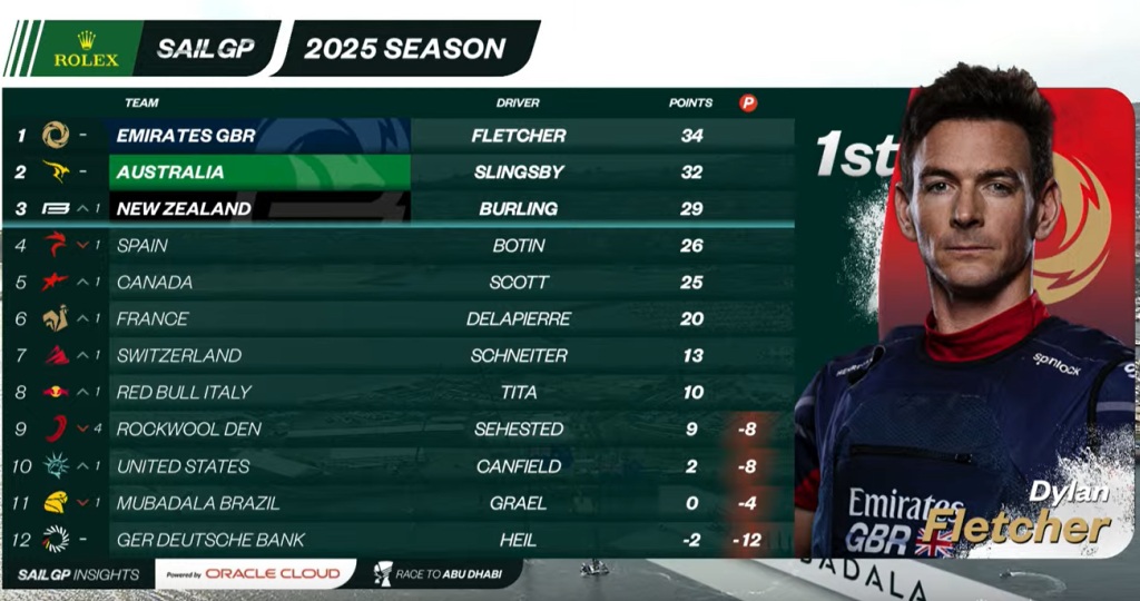 Heading into this weekend’s racing, Emirates Great Britain sit top of the season leaderboard, ahead of Australia in second and New Zealand in third.