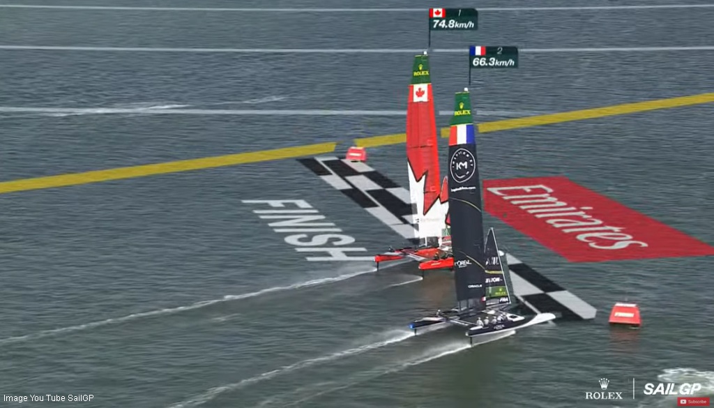 Canada came in fast at the final mark, catching Quentin Delapierre’s France to cross the finish overlapped.
