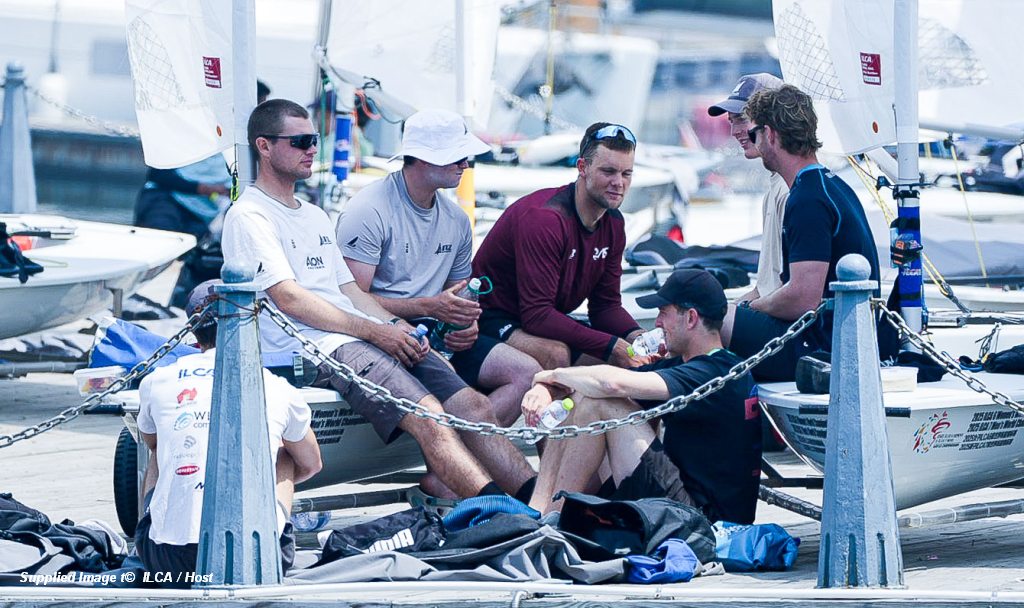 At 10:30, the AP flag was hoisted for the ILCA 7 course, signalling a postponement. By 10:45, the ILCA 6 fleet also raised the AP flag ashore. With barely a ripple on the surface, sailors and coaches were left in limbo.
