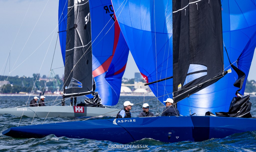 Meanwhile in the President’s Cup, Girls on Film (GBR 41) of Louise Morton, Charlie Cumbley and Sam Haines, won both races to win on countback from current world champions Ku-Ring-Gai III (AUS 66) of John Bacon, Edward Wright and Joost Houweling.