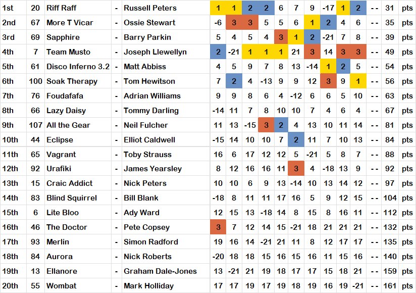 ‘Riff Raff’ started the final day tied on 19 points with Barry Parkin’s ‘Sapphire’, and Ossie Stewart’s ‘More T Vicar’ waiting to pounce if either slipped.