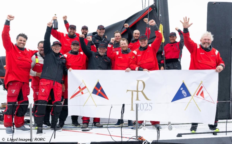 Volvo 70 Tschüss 2 (USA), owned by Christian Zugel and co-skippered by Johnny Mordaunt, takes Line Honours in the West to East Transatlantic Race 2025.