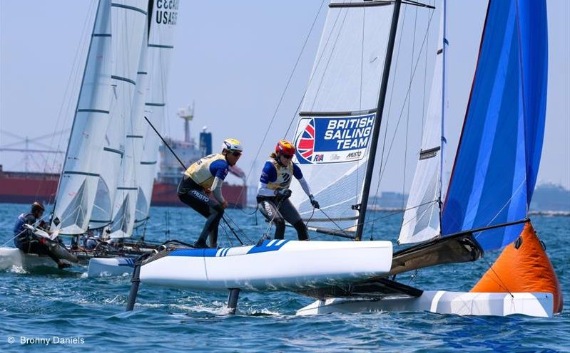 Britain’s John Gimson and Anna Burnet took Nacra 17 Gold at the Long Beach Olympic Sailing Grand Slam.
