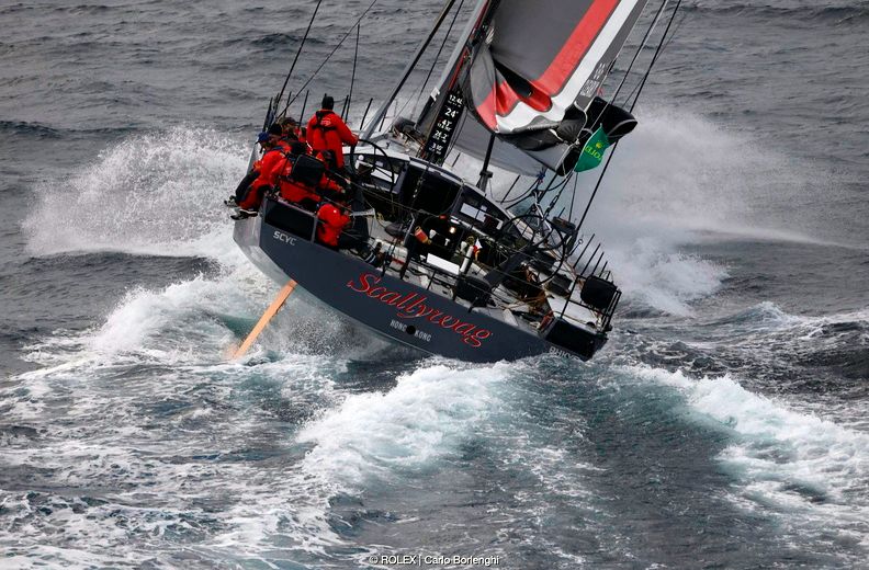 Scallywag was quickly followed by Black Jack 100 of Remon Vos, skipper Tristan Le Brun at 23:07 hrs and Leopard 3 at 23:17 BST in the centenary edition of the Rolex Fastnet Race.