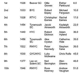 With racing cancelled on the final day, due to strong winds, results remained as at the end of day 4.