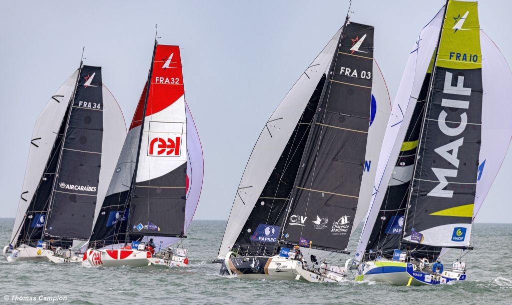 With a spectacular beam reach start from the Bay of Seine towards the Bay of Morlaix, timing was everything for La Solitaire du Figaro Paprec: Paul Morvan (French Touch – Foricher) was the quickest off the line but slightly too early, forcing him to recross.