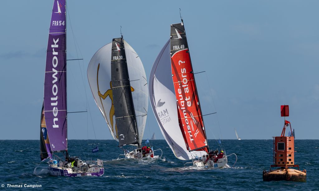 The bold tactical move launched overnight by Tom Goron and Charlotte Yven (Skipper Macif 2023) didn’t create a decisive break, but it certainly made an impression. Positioned in the leading group at Barfleur, the pair chose to dive west, alone, skirting under the no-go shipping lane (Traffic Separation Scheme).