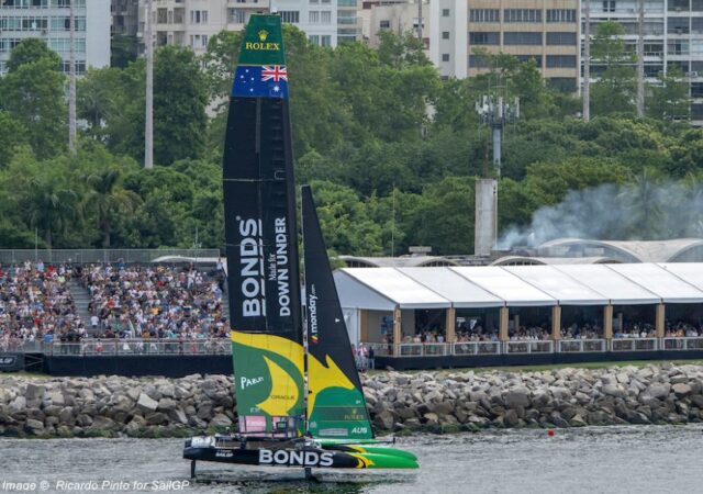 Racing was completed on schedule Saturday without any problems, the wind being on the light side and the F50’s spending some periods off the foils in displacement mode.
