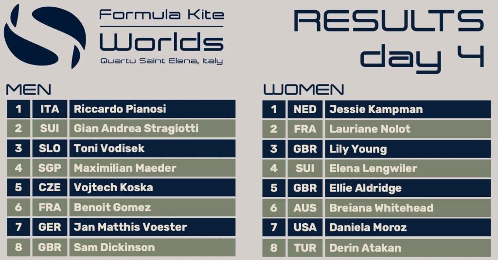 Consistency eluded almost everybody, in both fleets on day four of the Formula Kite World Championships in Quartu Sant’Elena, Sardinia.