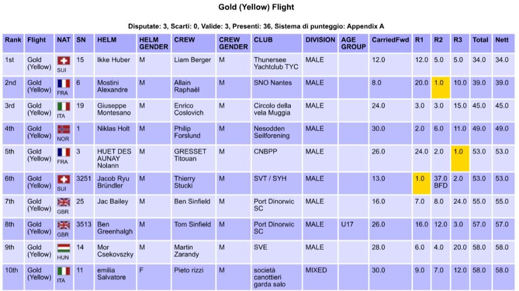 Overall leader is Switzerland’s Ikke Huber and Liam Berger (34 pts) with a five-point advantage over second placed Alexandre Mostini and Raphaël Allain (39 pts) of France. Now in third are Italians Giuseppe Montesano and Enrico Coslovich (45 pts), who moved up from sixth.