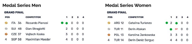 For the men the line-up reflected age and experience: Pianosi, Max Maeder, Defending champion Gian Stragiotti and Vojtěch Koska of Czechia.
