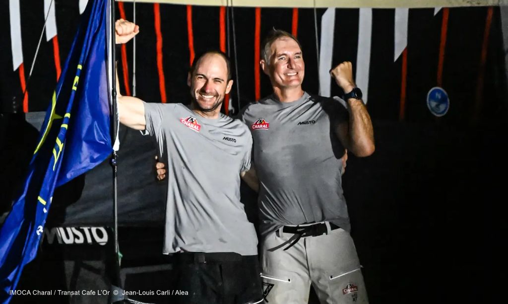 Jérémie Beyou and Morgan Lagravière on Charal 2 took IMOCA class victory in the TRANSAT CAFÉ L’OR in Martinque.