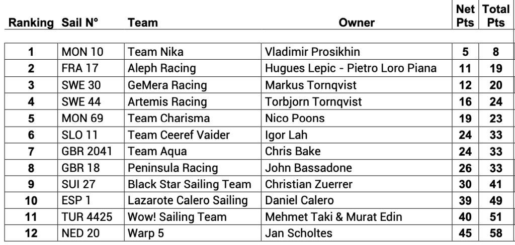 3rd Artemis Racing (26) Torbjorn Tornqvist – 50 pts