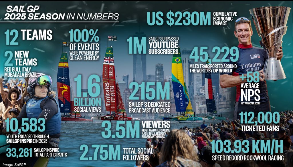 SailGP has rolled out a stellar set of performance numbers for the 2025 season, highlighting unmatched audience growth, new commercial partnerships, high-profile investors and scaled global operations.