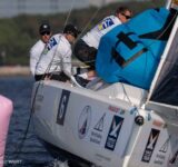 Britain’s Matilda Nicholls (11, 8) drops to 9th overall in the ILCA 6 mixed fleet, with Jon Emmett 20th overall.