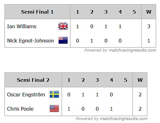 Poole and Engström will return to the water Sunday for a decisive fifth race, with the winner advancing to the championship final against Williams.