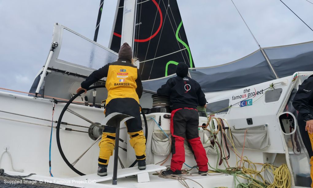 With the record breaking Sodebo 3 safely in harbour, IDEC SPORT of The Famous Project CIC, are battling across the Bay of Biscay to join them and become the first female crew to complete a circumnavigation in a multihull.