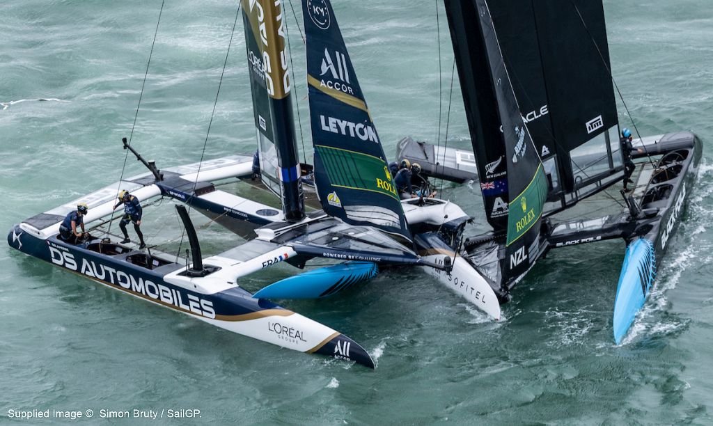 Following the collision between New Zealand’s Black Foils and DS Team France in the New Zealand Sail Grand Prix Auckland, two crew, Louis Sinclair (NZL) and Manon Audinet (FRA), were taken to hospital for their injuries and are reported as stable.