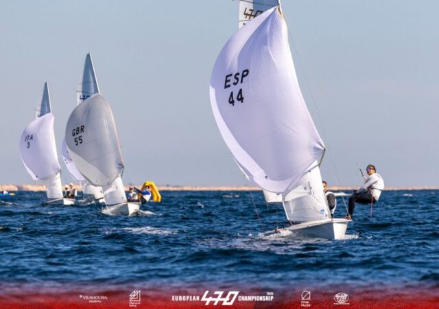 Britain’s Freya Black and Saskia Tidey (10, 1, 9) were the one bright spot for the British Sailing Team 49erFX/49er competitors, winning their second race at the event and moving into third overall.