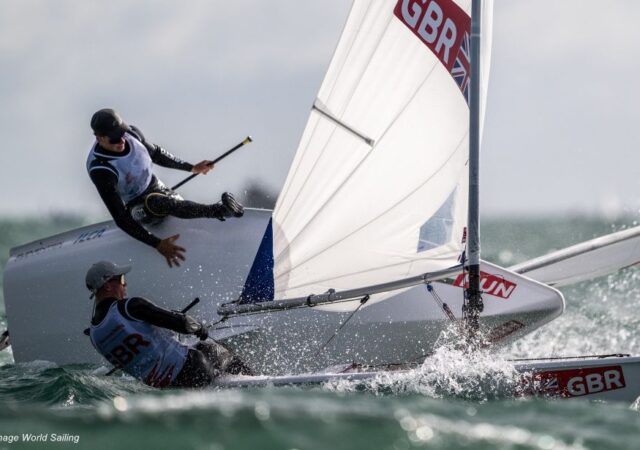 Britain’s Chris and Tim Gibbs (7, 8) are 6th with 29 pts, Will Gibbs and Charlie Orton (12, 13) are 7th with 33 pts, and Paddy Spink and Tim Andrews (2, 11) 8th on 24 pts.