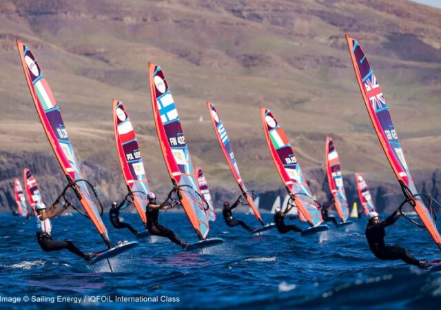 Upwind Sprint racing on day 2 reshaped the leaderboard as Federico Pilloni takes the Men’s lead and Emma Wilson extends her dominance at the iQFOiL International Games.