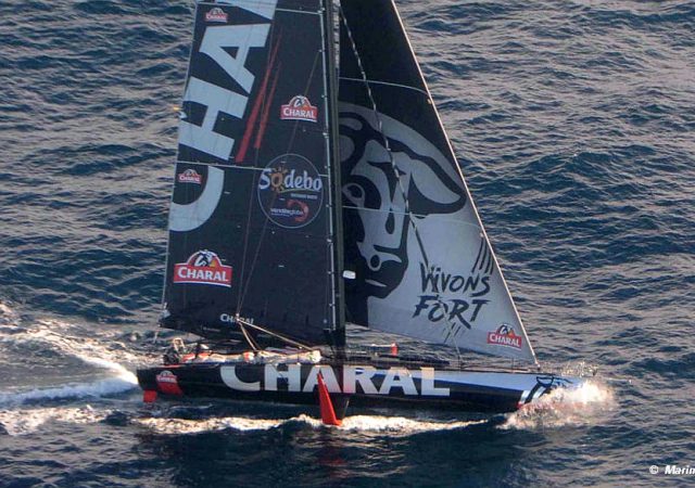 Early Wednesday morning, Jérémie Beyou on Charal turned back towards the Vendee Globe start port of Les Sables d’Olonne with a damaged backstary