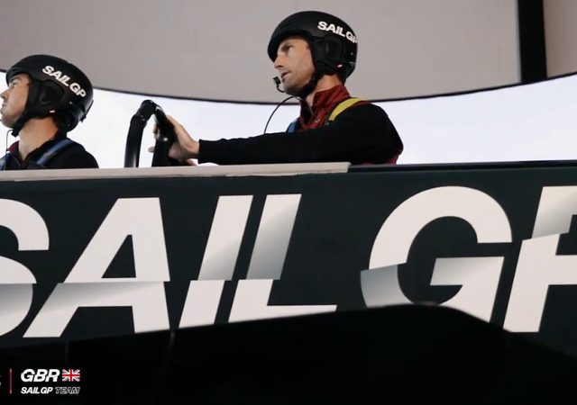 Great Britain SailGP Team helmsman Ben Ainslie stepped onto the high-tech simulated replica of the SailGP F50 for the first time, see video here